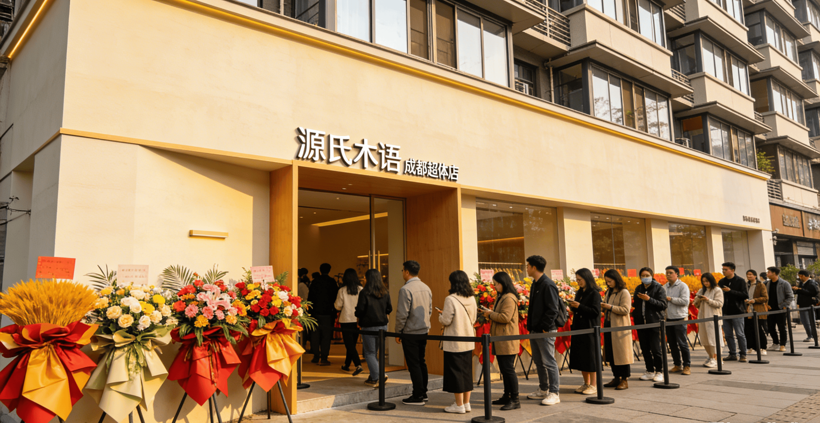 近日,实木家居领军品牌源氏木语成都超体店于富森美·天府直播港正式启幕,这座独栋五层、建筑面积约2000㎡的跨层体验空间,不仅是源氏木语“超级大店战略”在西南地区的核心落子,更是品牌探索家居零售从“销售产品”到“提案生活”价值跨越的重要实践。作为连续两年稳居天猫618、双11家装品类冠军的头部品牌,源氏木语此次布局成都,以“场景化体验+全风格呈现”的创新模式,为西南家居消费市场注入新活力,也为行业转型提供了可借鉴的样本。