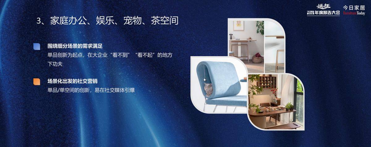 家居行业的主流品类和核心市场已高度成熟,大部分赛道进入存量竞争阶段。而家庭办公、家庭娱乐、宠物家居、茶家居等场景,这些细分场景与具体需求,正在逐步显现增长潜力。