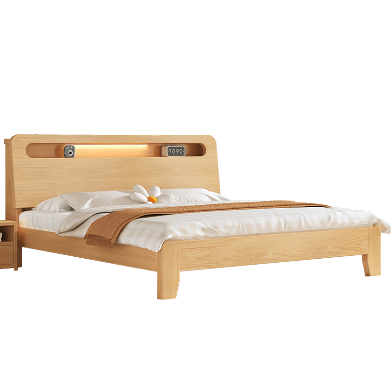 科虎实木床的设计可谓独具匠心。它不仅是一张普通的床,更是一件多功能的家居艺术品。床头设计了实用的置物架,让您随手可得生活中的小物件,随时保持卧室的整洁。而暗藏的夜灯设计,更是在夜晚为您提供温暖的陪伴,助您安然入睡。